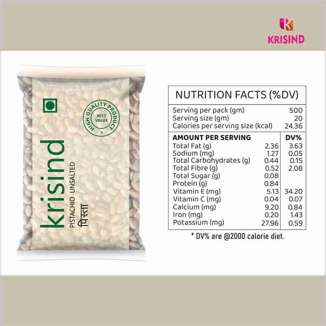 • Krisind Pistachio (Pista) are hndpicked premium, big sized, fresh, crunchy, raw cashew Nuts