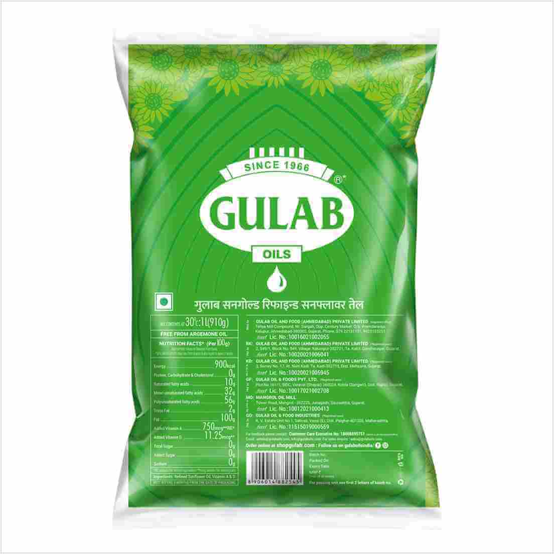 | Packed by | Gulab Oil and Food Industries |