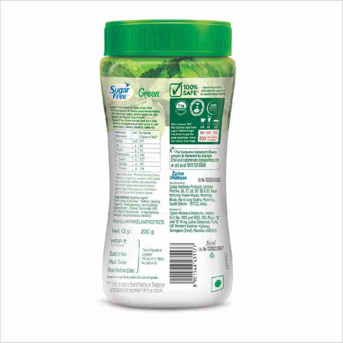 Sugar Free Green Stevia Jar, 200 g | 100% Plant-based Natural Sweetener | Equivalent to Sweetness from 1Kg Sugar