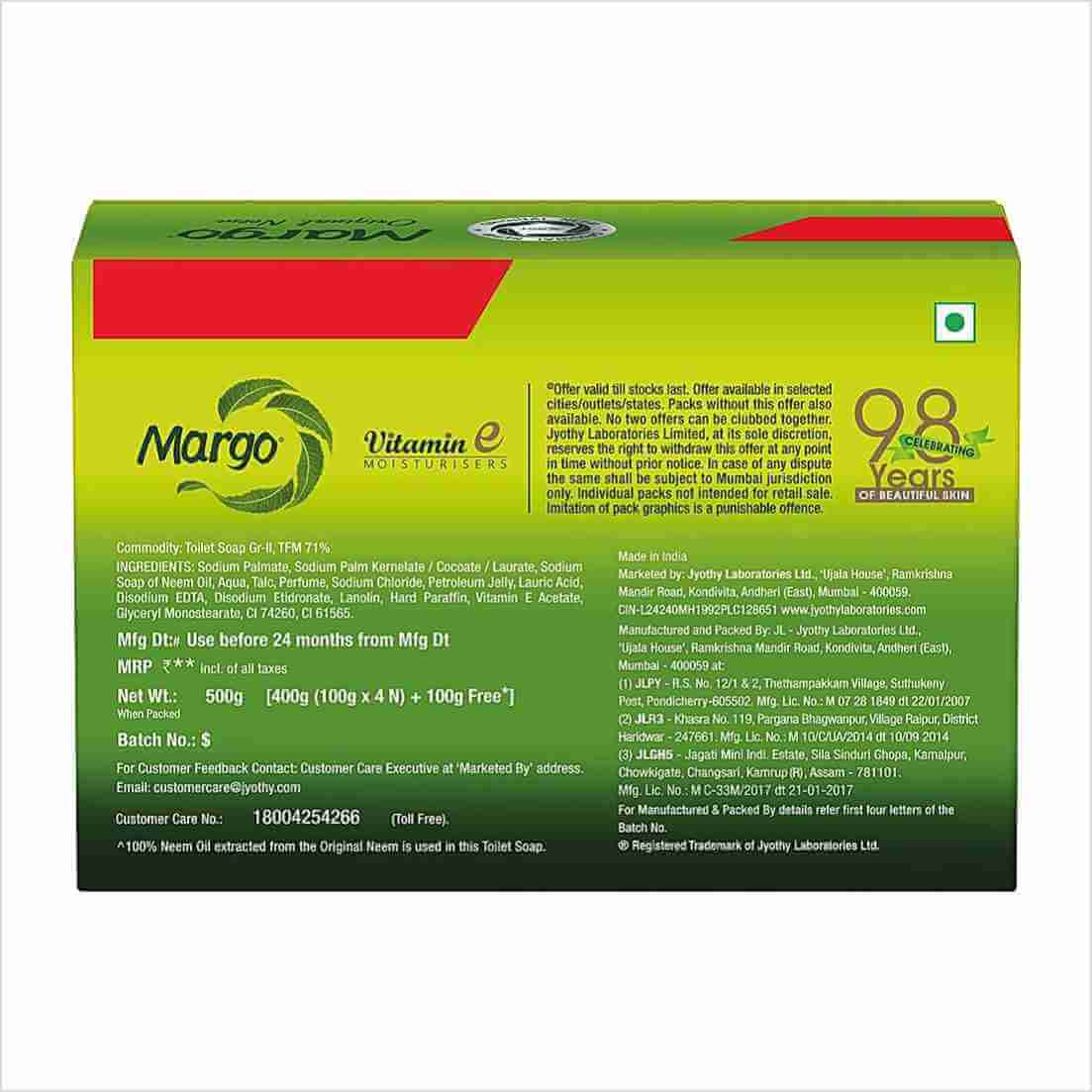 Margo 100% original neem is infused with Vitamin E for added moisturizing. Its natural therapeutic action deep cleanses and protects your skin.