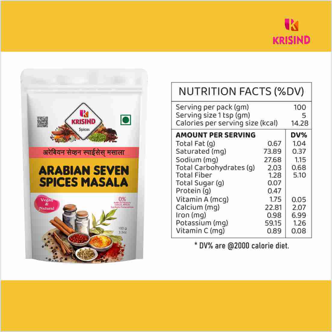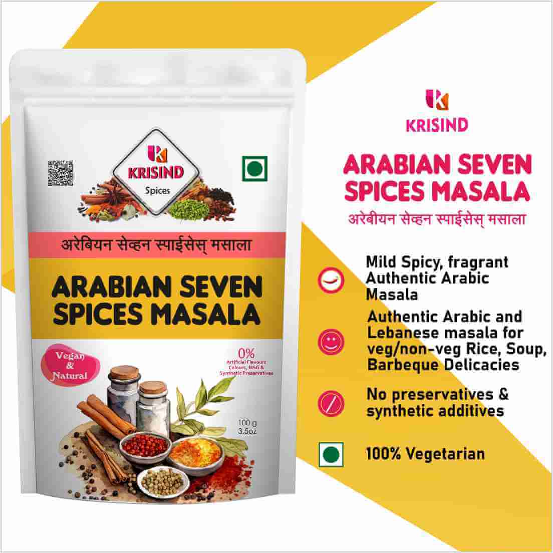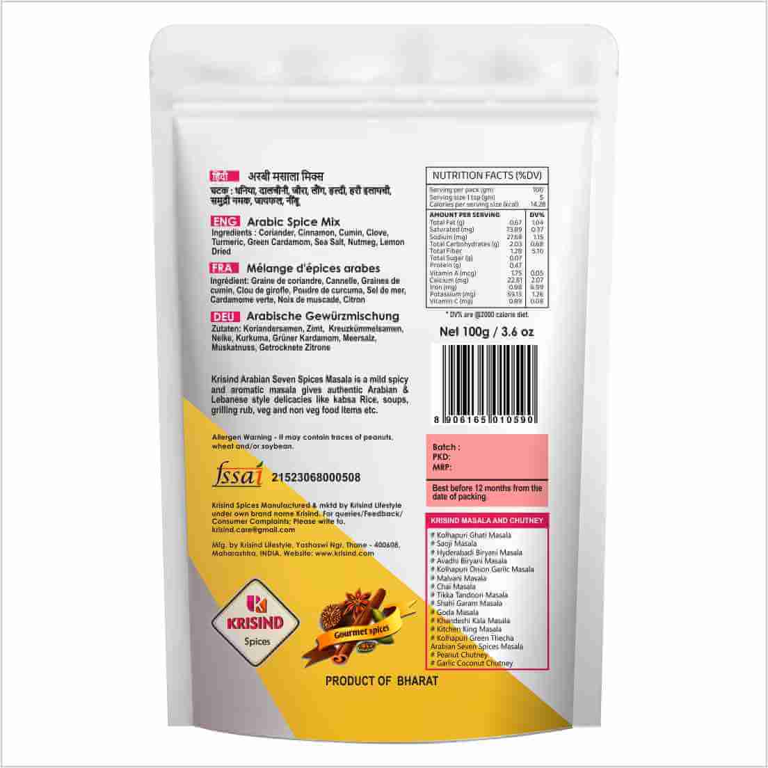 Krisind Arabian 7 Spice Mix – Aromatic Flavourful blend with 100% Natural Ingredients – 100g