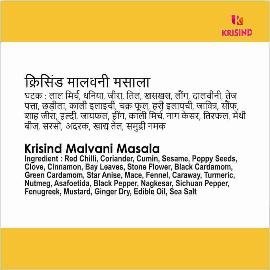 Krisind Special Malvani Masala is a versatile spice blend which can be used to make variety of snacks and main courses ranging Vegetables, Pulses, Chicken, Mutton and Seafood.