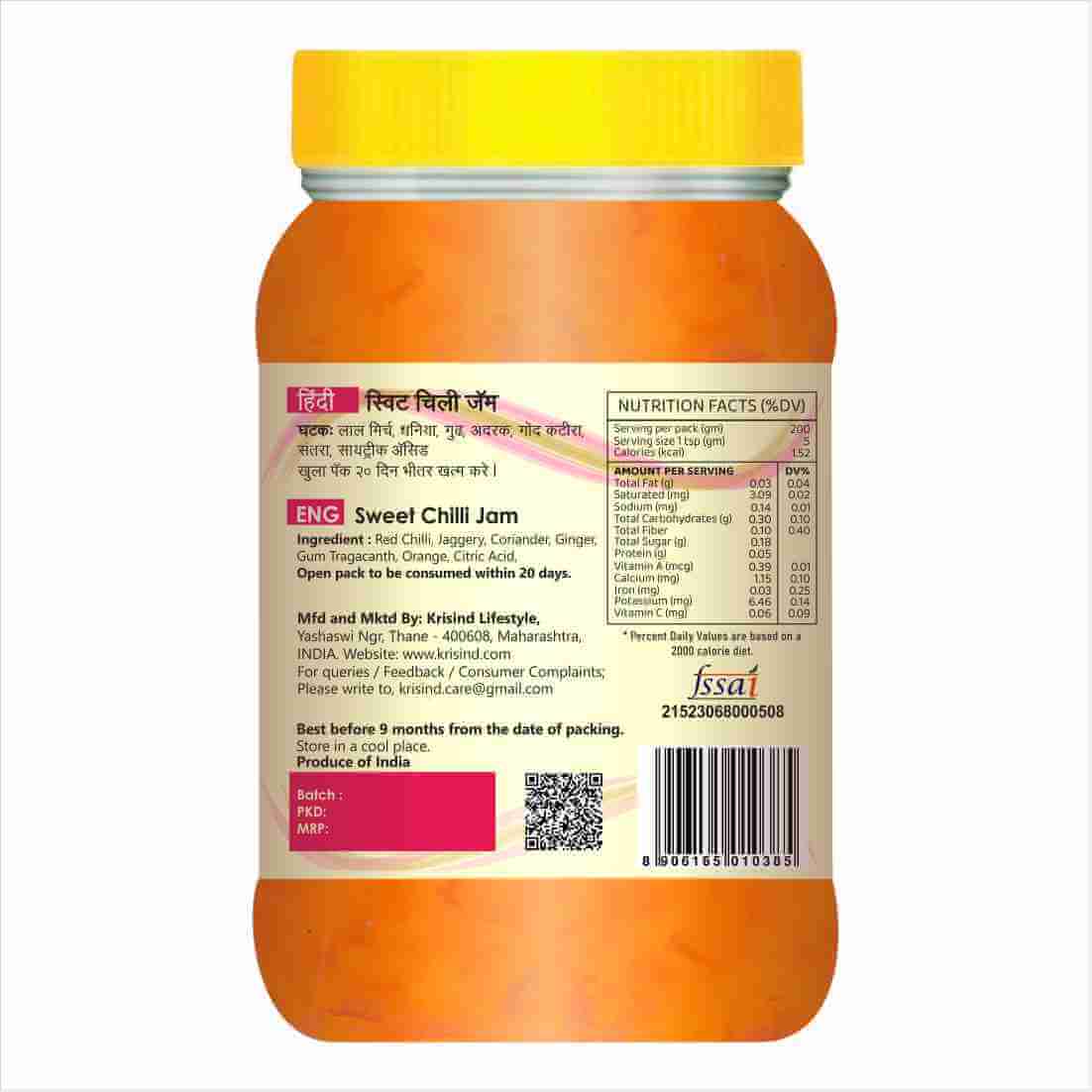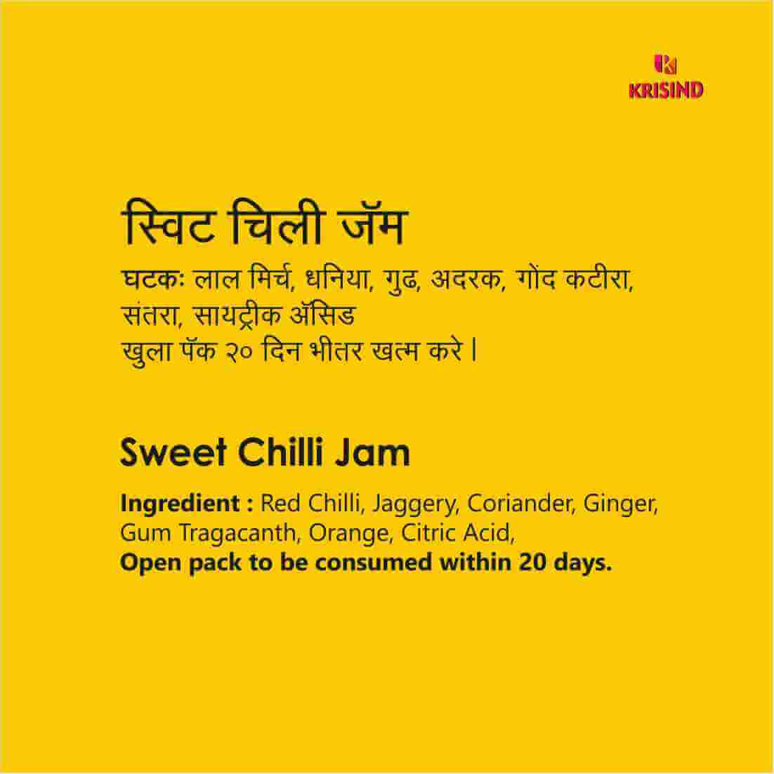 Krisind Sweet Chilli Jam (Gourmet Spread, Sauce, Marinade) | Made with Natural Ingredients – 200g