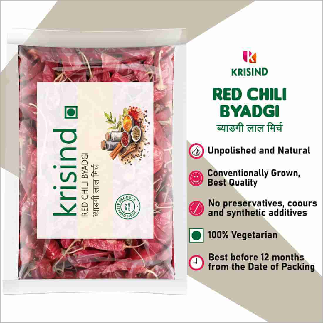 Krisind Select Byadgi Chilies | Bedgi Deghi Mirchi| Premium Quality
