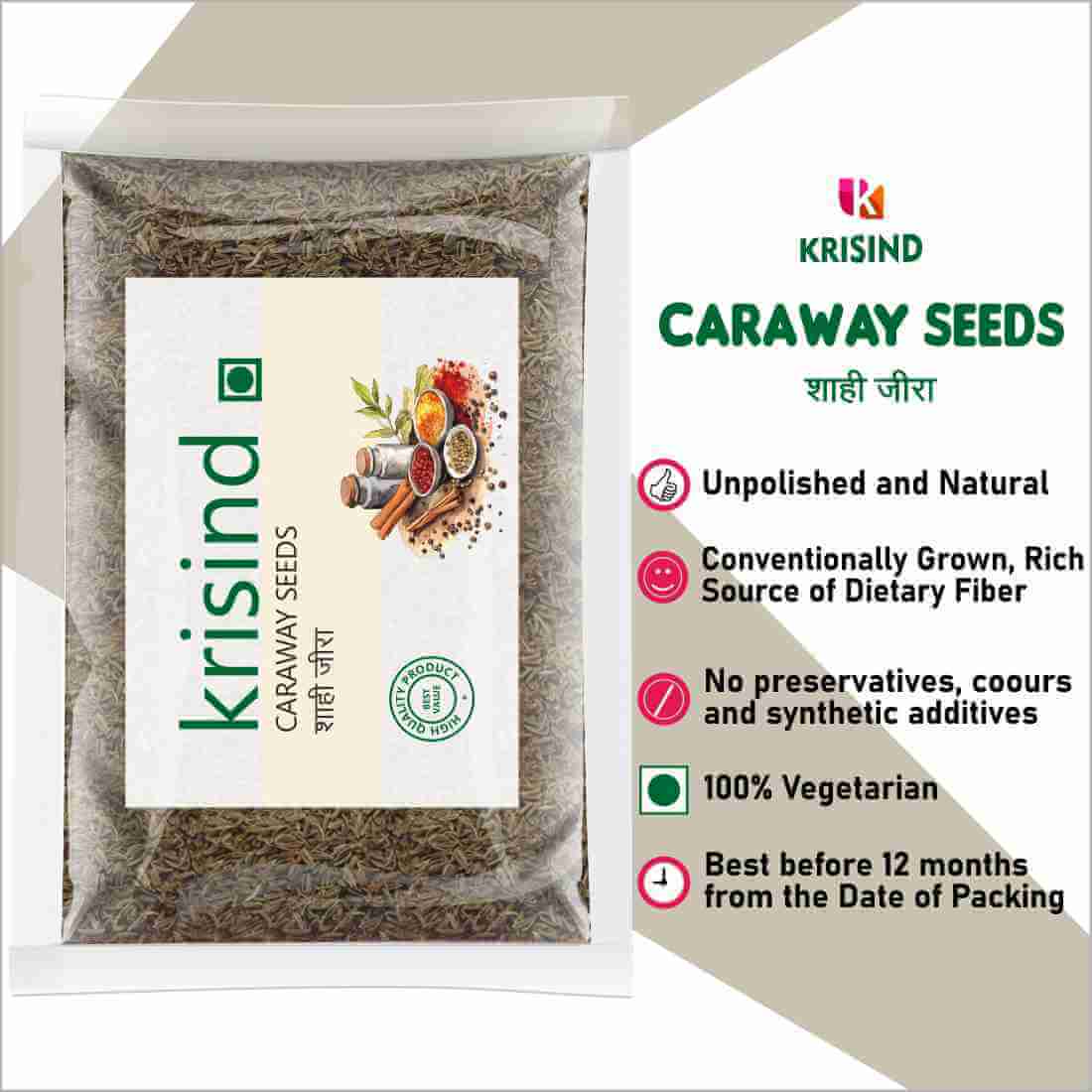 Krisind Select Caraway Seeds| Shah Jeera | Premium Quality | 50g